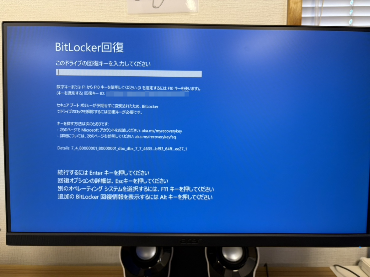 「急に BitLocker の画面が出て、回復キーを入力してくださいと表示されました…」