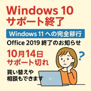 はなまるパソコン教室(松戸市・鎌ヶ谷市・市川市エリア)からのお知らせです。 これまで当教室では Windows10・Windows11の両方に対応 しておりましたが、Windows10のサポート終了(2025年10月14 […]