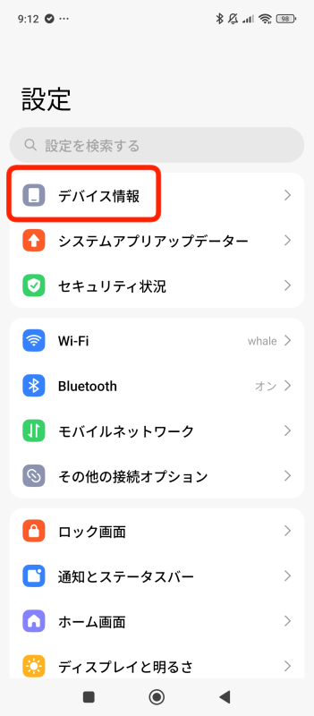 2.「端末情報」または「デバイス情報」をタップ。(機種によって異なります)