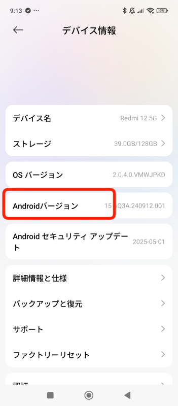 3.Androidバージョンを確認。Androidバージョンが8以上なら大丈夫です。
