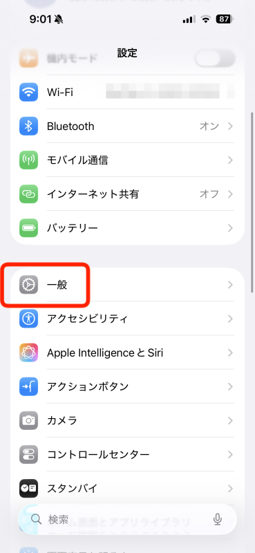 2.「一般」をタップ