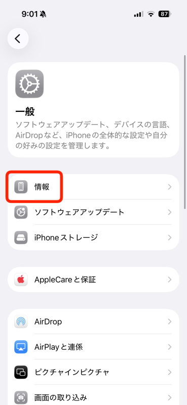3.「情報」をタップ