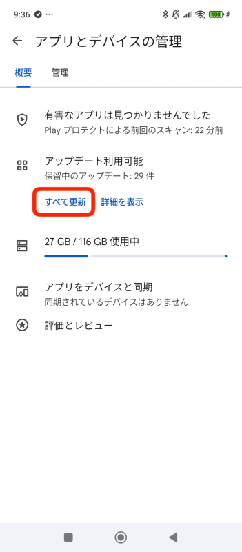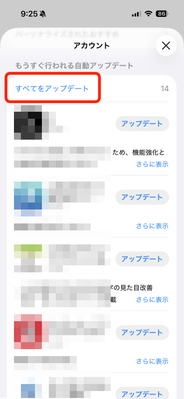 3.下にスクロールし「すべてをアップデート」をタップ。これでアプリが更新されます。