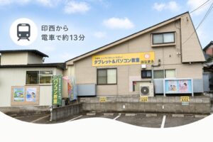 はなまるパソコン教室は、北総線大町駅から徒歩2分、京成松戸線くぬぎ山駅から徒歩約10分の場所にあり、駐車場もあります。
